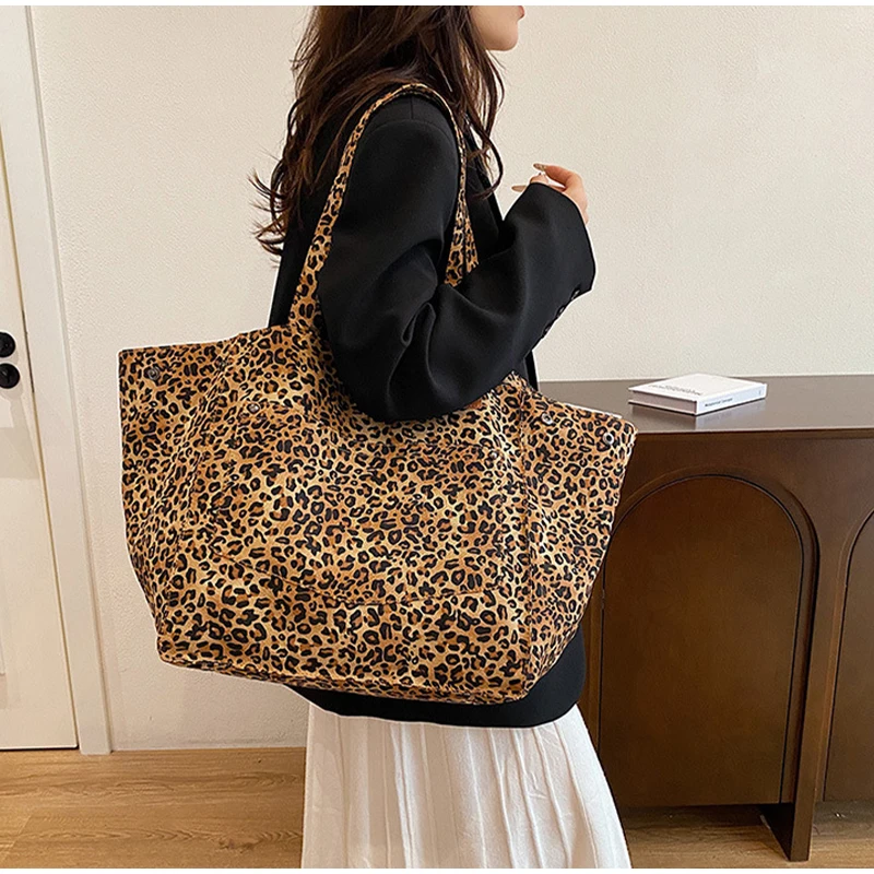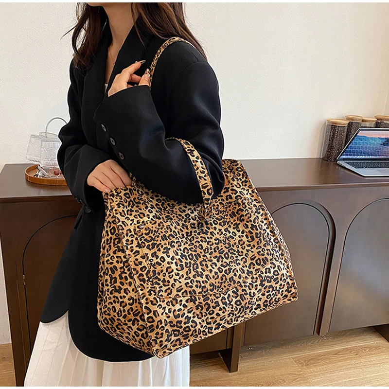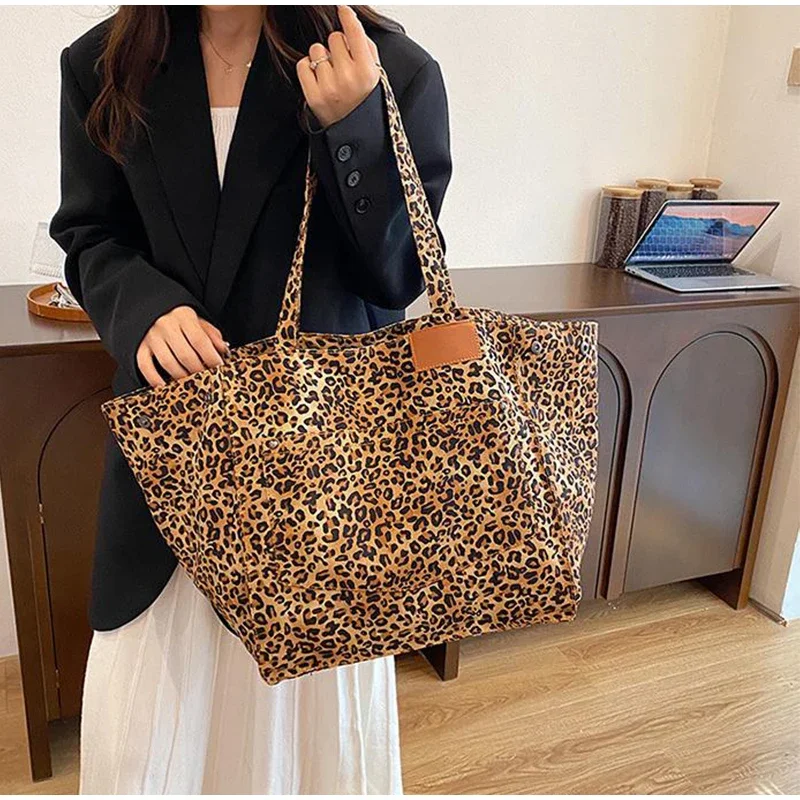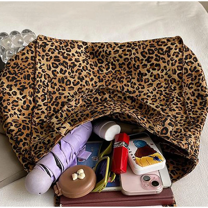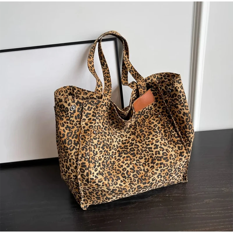 - Fashionable Design :The tote bag features a stylish leopard pattern design, adding a touch of vintage chic to your everyday style.
