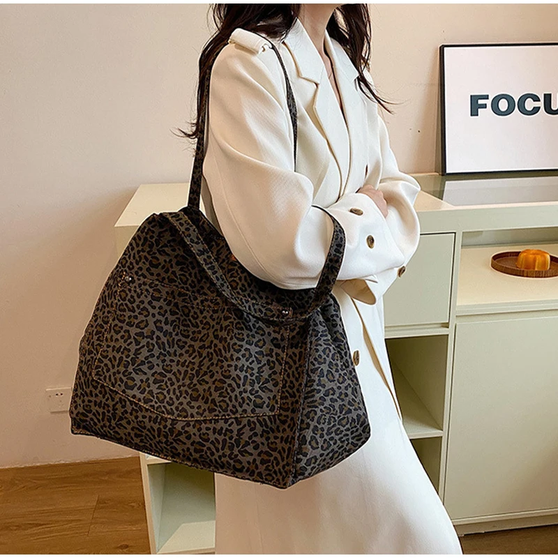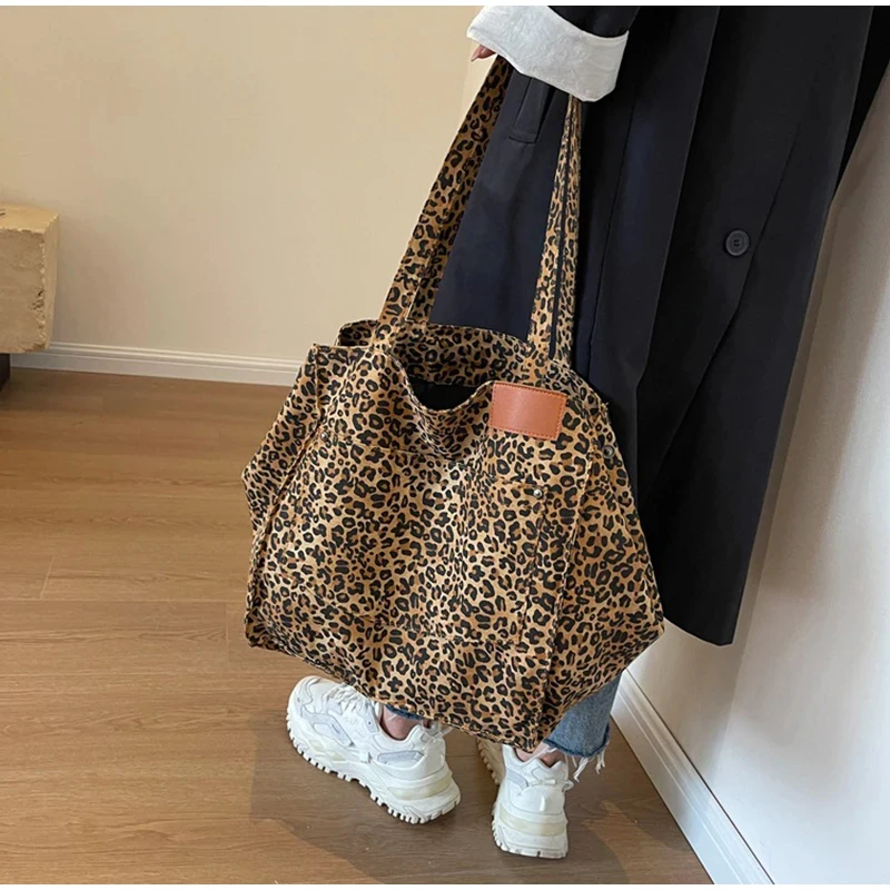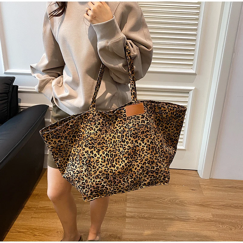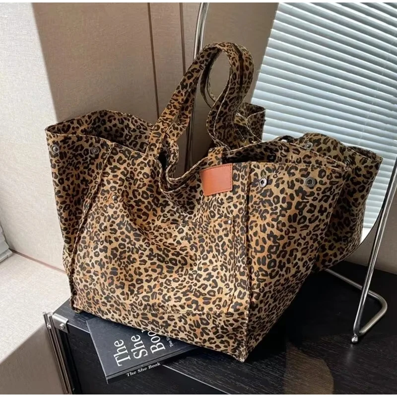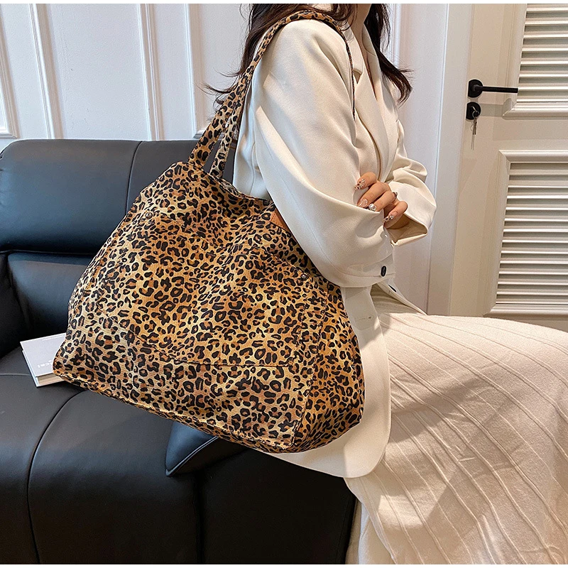 - Fashionable Design :The tote bag features a stylish leopard pattern design, adding a touch of vintage chic to your everyday style.